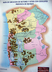 Geoglifos en la provincia de Iquique: Mapa de ubicación de sectores y sitios con geoglifos en la provincia de Iquique.