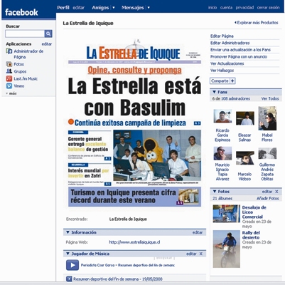 Hace tres semanas que La Estrella de Iquique abrió una página en la red social�Facebook y con ello abrió una nueva etapa en la manera en que La Estrella ofrece la información a sus miles de lectores que tienen en su edición en papel y también en su sitio web.