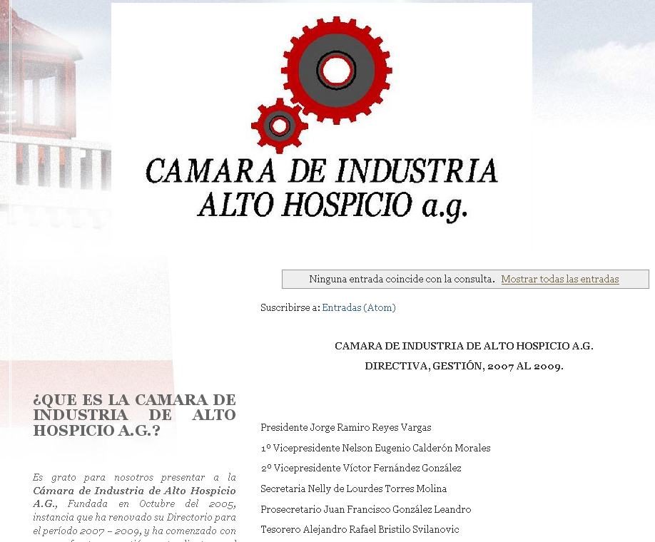 La Cámara de Industria de Alto Hospicio A.G., nació en octubre de 2005 y a principios de este año renovó directorio para el periodo 2008 y 2009. Dentro de sus objetivos está incrementar su presencia en la red. En un sencillo blog establecen su agenda de trabajo y sus objetivos para el presente año.