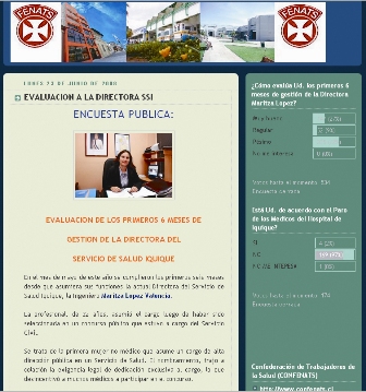 La Fenats Iquique está tomando el pulso a la opinión de la ciudadanía, especialmente del personal que trabaja en el Hospital Ernesto Torres Galdames. Junto con la publicación de informaciones gremiales, también levanta encuestas. Ahora está vigente una consulta sobre cómo evalúa la gestión de la actual directora del Servicio de Salud, Maritza López.