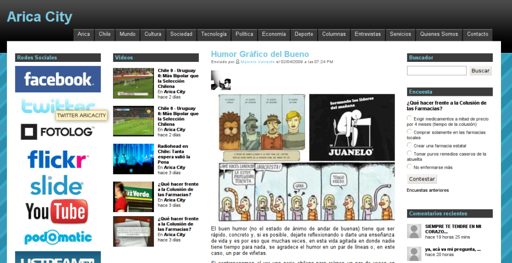 Arica City / Ciudad Arica nació esta semana es una revista/diario/blog/magazine/sitioweb escrito por amigos ariqueños.