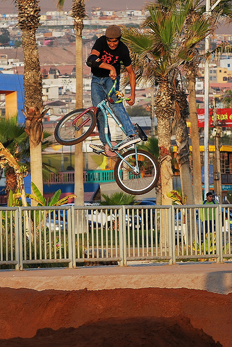 Diego BMX (via stay up) en el Skate Park de Playa Brava en Iquique.