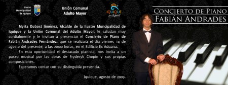 CONCIERTO DE PIANO ESTE VIERNES 14 de AGOSTO EN LA EX ADUANA