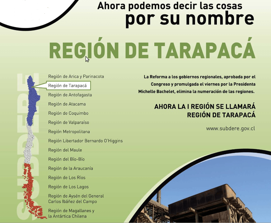 De Primera Región de Tarapacá a Región de Tarapacá.