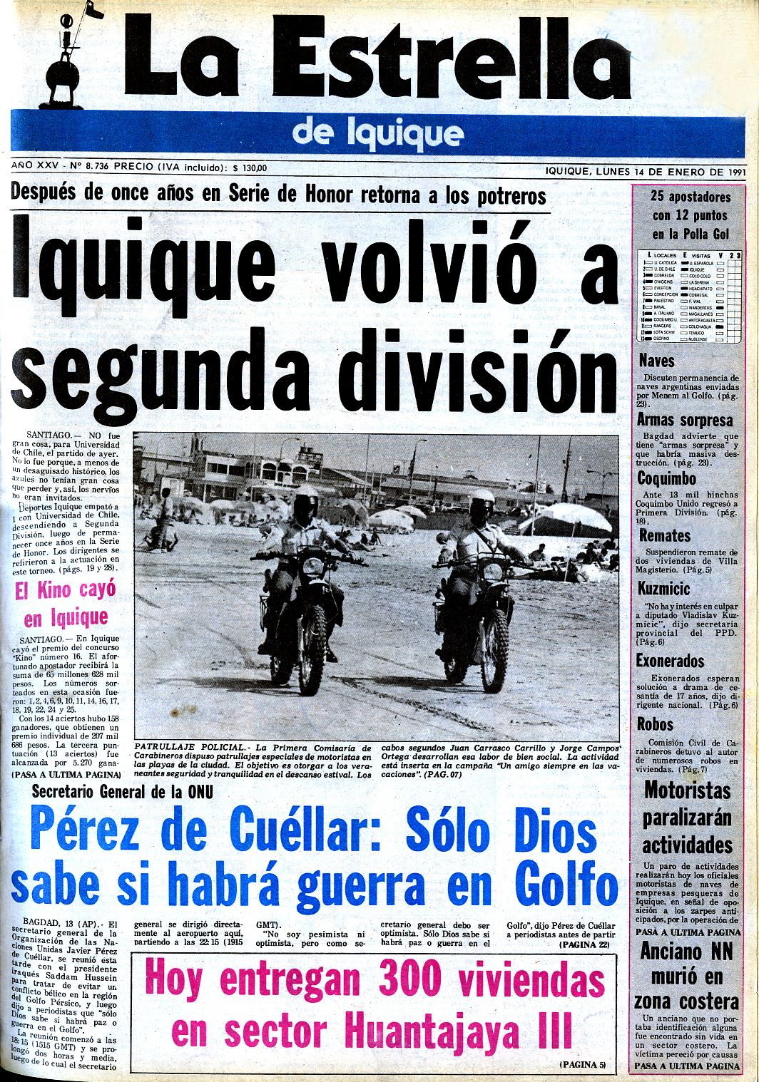 Oscar González, ex tesorero del directorio de Leonardo Solari, manifestó que el descenso de Iquique es el reflejo del trabajo efectuado por el directorio durante 1990″.