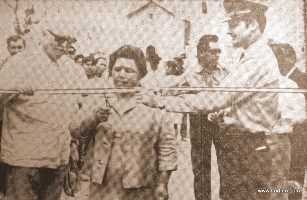12 de enero de 1971.- Francisca de Baltazar fue designada como madrina de las obras del camino de penetración a Sotoca. Ella fue la encargada de cortar la cinta tricolor con que se dio por inaugurado esta ruta. Junto a ella está el jefe zonal de Obras Públicas, Armando Galté y el ayudante de la intendencia, teniente José Muñoz.