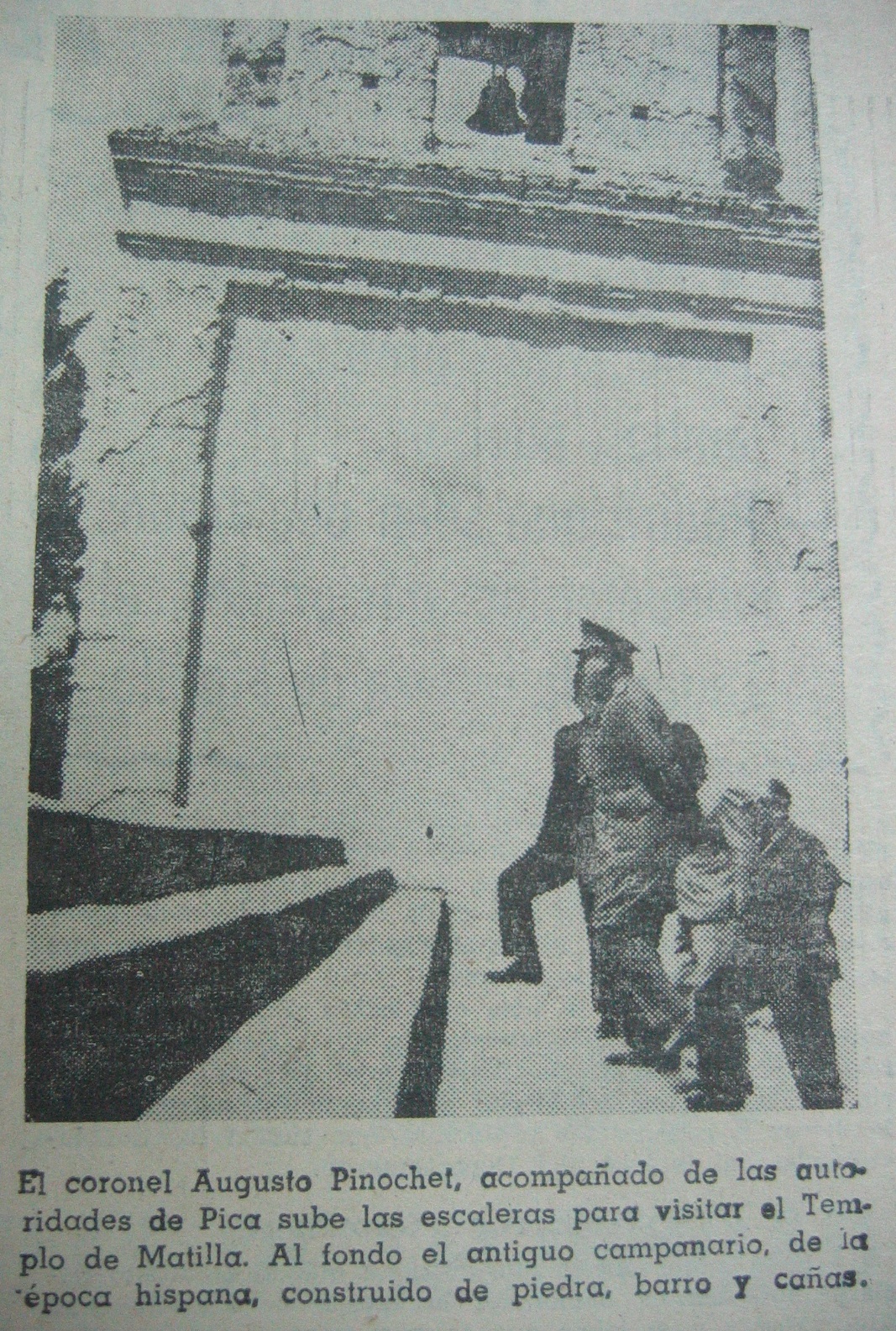 Durante una vista a Pica y Matilla el intendente subrogante y comandante en jefe de la Sexta División de Ejército, coronel Augusto Pinochet Ugarte, se comprometió a gestionar ante el Instituto Corfo del Norte la solución de la falta de energía eléctrica en el oasis.