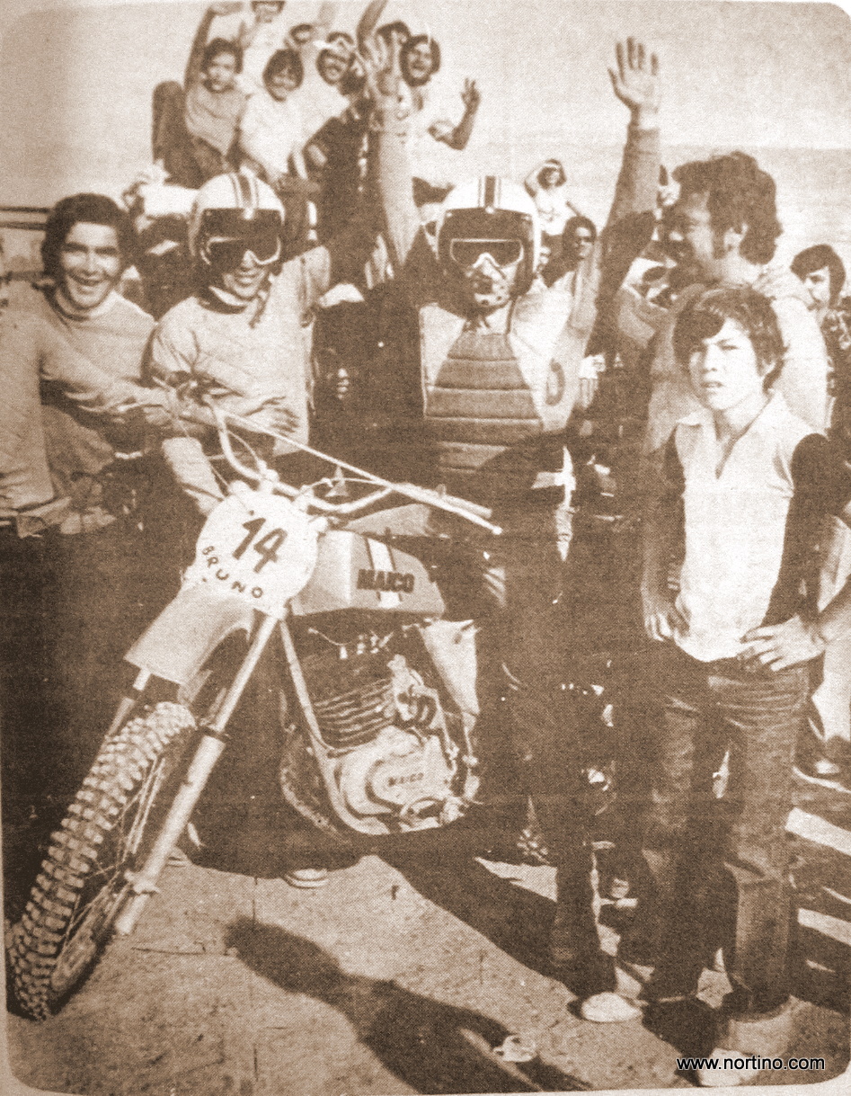 El equipo iquiqueños de motocross está arrasando con los primeros lugares en el Campeonato Internacional que se están efectuando en Arica. Bruno Zerega, de Iquique, que con un magnífico tiempo se impuso ampliamente con su máquina Maico 250. Marzo de 1978.