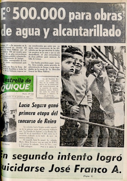 En octubre de 1967 se anunció una ambiciosa inversión de 500 mil escudos para mejorar la red de agua potable y alcantarillado para el Departamento de Iquique.