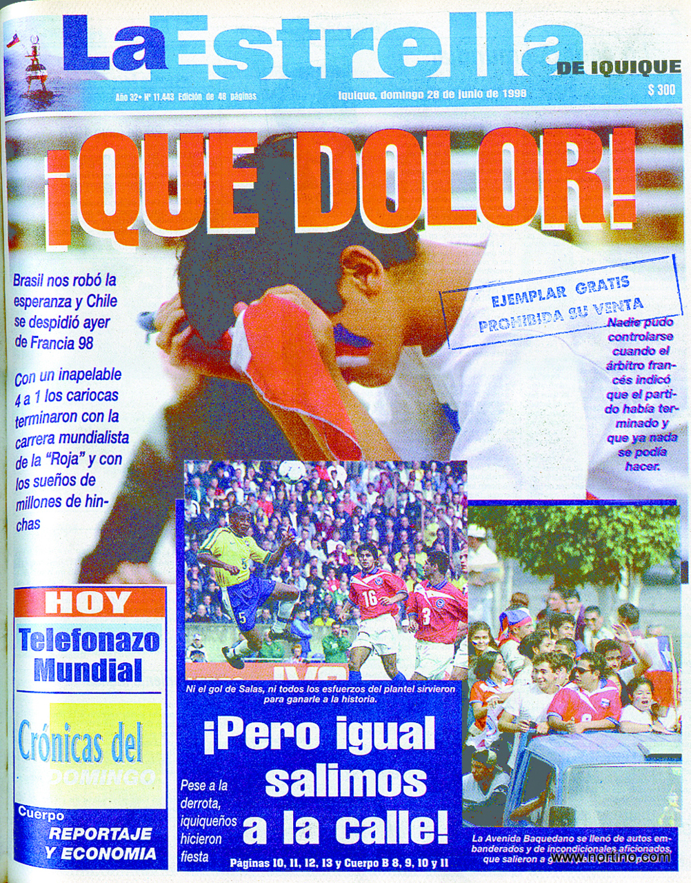 Domingo 28 de junio de 1998.- Sólo 10 minutos de 90 duró la ilusión por cambiar la historia deportiva mundial. Hasta la apertura del marcador de César Sampaio, Chile tenía la actitud y el espíritu ante Brasil.