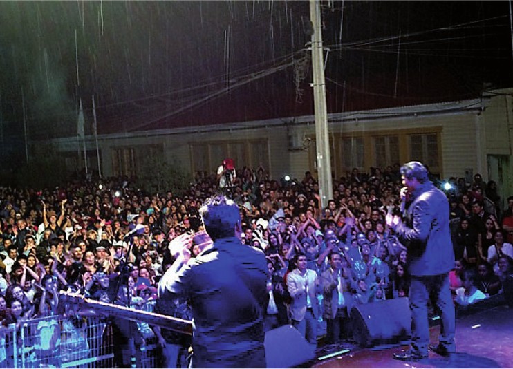 A pesar de una sorpresiva lluvia, el público siguió fiel el espectáculo que ofreció Américo durante el Festival de Huara.