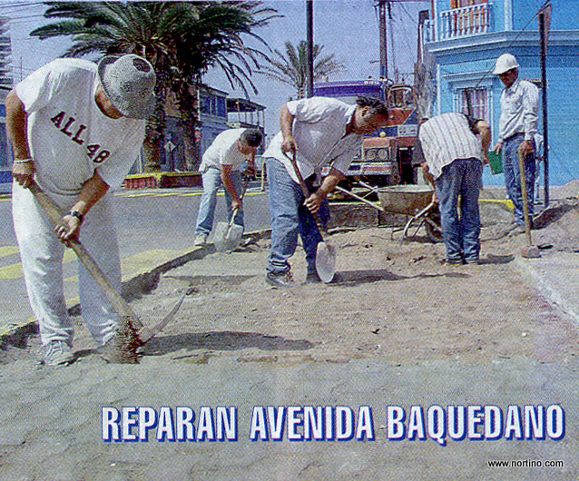 29 de septiembre de 2000.- Como nuevas quedarán las veredas de la avenida Baquedano gracias a los trabajos de reparación que inició el Servicio de Vivienda y Urbanismo. La obra, que demanda una inversión de 26 millones de pesos, estará terminada en 45 días.