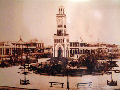 Parte del desarrollo urbano y comercial de Iquique a fines del siglo XIX fue reflejado en la construcción de la Torre del Reloj de la Plaza Prat. El comerciante de origen francés Eduardo Lapeyrouse envió a diseñar la torre y el reloj a Europa en 1877 y llegó a ser el primer alcalde del municipio iquiqueño cuando éste pasó a dominio chileno en 1879.