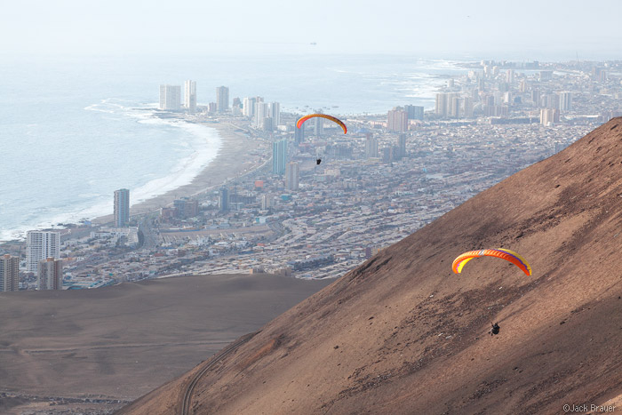 We’ve spent the last few days relaxing in Iquique, a city in northern Chile. Along with it’s renowned beaches, Iquique is famous for its perfect paragliding winds, especially this time of year (spring) when the winds blow consistently off the ocean and up the enormous hills that loom above the city. We met a Chilean paraglider in our hostel who a few days before had flown 160 km down the coast from Iquique to Tocopilla! (vía Iquique | Mountain Photographer)