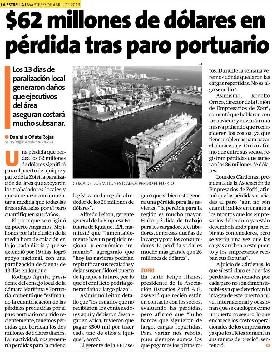 62 millones de dólares no se transportaron durante paro portuario.
