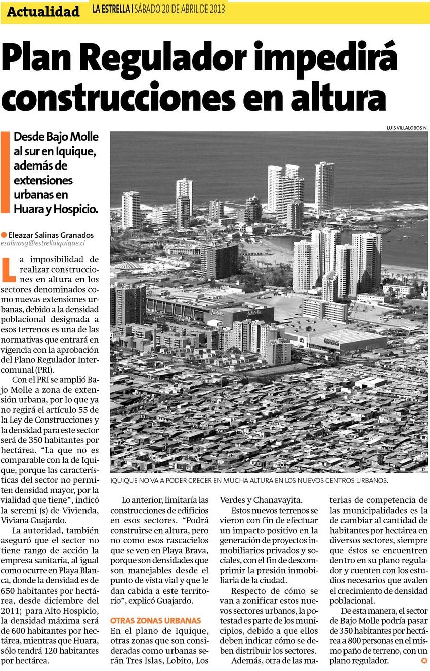 Plan regulador impedirá construcción en altura.