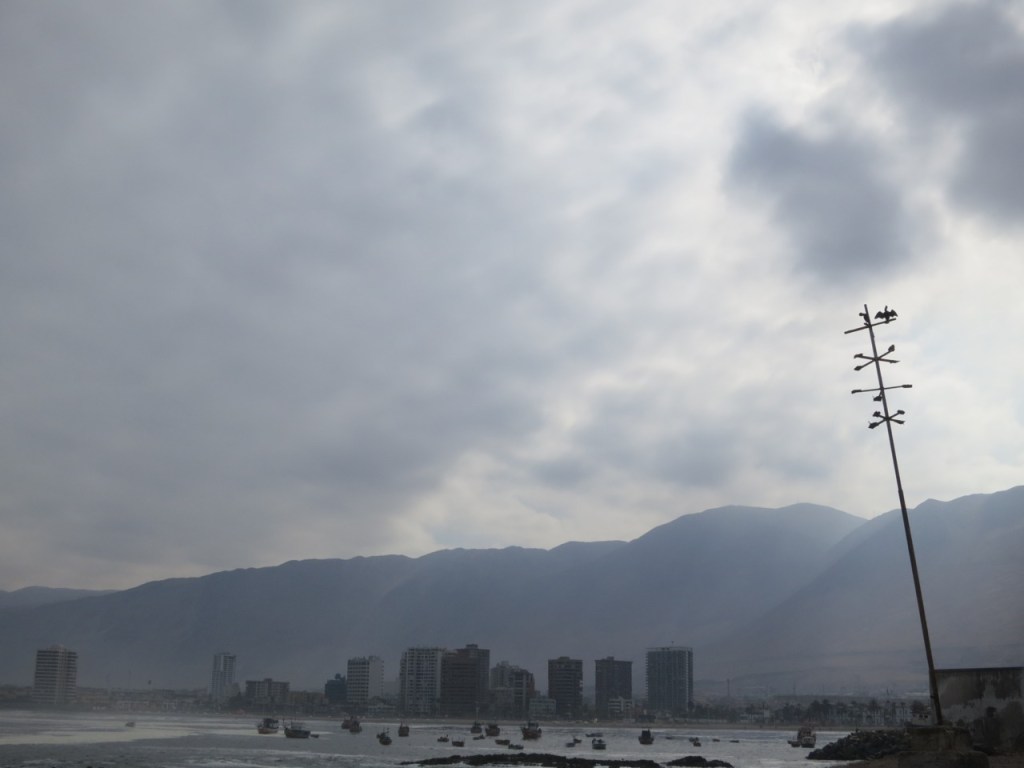 Iquique is a surf town. The hostels all rent boards, the taxis have roof racks and lessons are available far and wide. In the event that you don’t surf, the other activity there is paragliding. Any time of day you can look at the ocean and see the break, thick with surfers, then look toward the dunes crouching behind town and see the chutes of the parasailers gliding across the desert. What the guidebooks don’t mention is that Iquique is a bonafide cowboy town. It’s former “main” street, north of all the coated-glass, high rise condominiums, is lined with wooden store fronts. Many of the buildings have a second story facade, the boardwalk is just that, a wide wooden sidewalk on both sides and an old steel frame, wood paneled trolley runs the length of the street. It’s beautiful and nostalgic and makes me think of those tiny clapboard towns that sell dream catchers in the Pacific Northwest at the end of the Oregon trail. Most of the buildings are now occupied by municipal offices, one is a college, some are restaurants, others are undergoing extensive renovations and some are completely defunct covered in graffiti, bum excrement in the corners, with broken windows and peeling paint. The street is largely untouched by tourists, they’re either clamouring on the sand in wet suits or airborne.