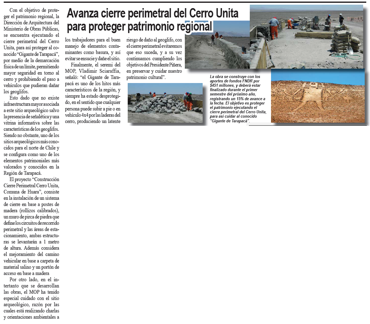 El Ministerio de Obras Públicas trabaja en el cierre perimetral del Cerro Unita, donde se encuentra el Gigante de Atacama.