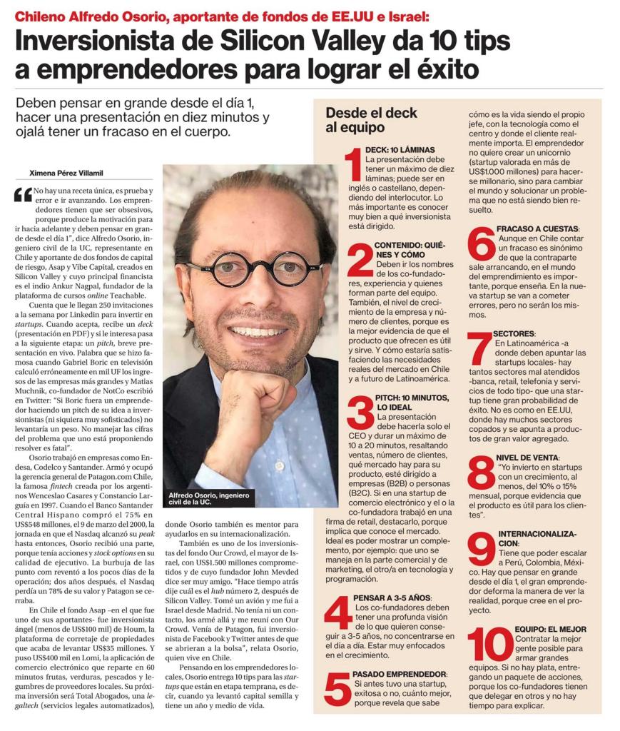 Los 10 tips según el chileno Alfredo Osorio, inversionista de Silicon Valley están escritos en el artículo de más abajo.