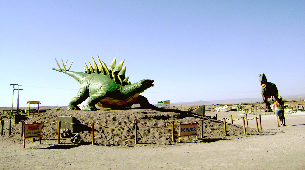 1.- Hace 65 millones de años, los dinosaurios dominaron esta tierra. En vez de extensos desiertos, en la Región de Tarapacá existían sinuosos ríos y amplios bosques que en nada hacían presagiar la sequedad de hoy. A 70 kilómetros al sureste de Pica se encuentra la Quebrada de Chacarillas. En ese lugar existen varias docenas de huellas de dinosaurios que habitaron el Norte Grande. Las huellas pertenecen al periodo cretácico, que comenzó hace 100 millones de años y se caracterizó por la gran variedad de dinosaurios que existieron.