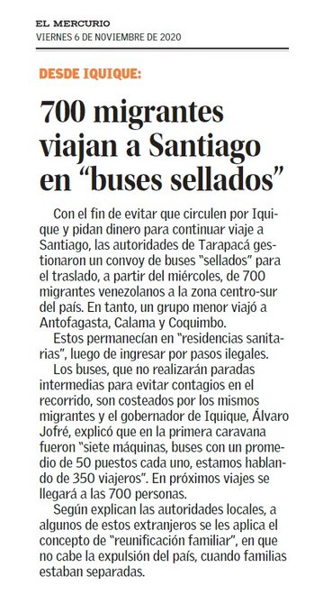 Durante septiembre y octubre, la presencia de inmigrantes venezolanos ingresando ilegalmente por Colchane se convirtió una realidad diaria. Las autoridades los instaló en albergues para efectuar cuarentena preventiva por COVID. En noviembre la autoridad coordinó varios viajes en buses hasta Santiago, lugar de destino final para la mayoría de las personas.
