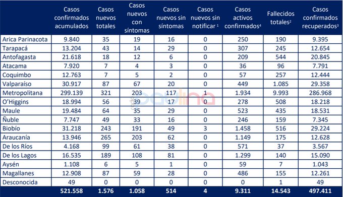 El ministerio de Salud informó el domingo 8 de noviembre que la región de Tarapacá reportó 43 nuevos casos de #coronavirus, con 307 personas activas confirmadas. La región presenta una positividad diaria de 4%, ante 1.082 exámenes informados. La positividad semanal es de 4%.