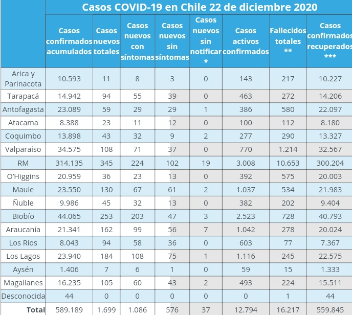 El 22 de diciembre los casos nuevos totales en la región de Tarapacá llegaron a 94, llegando a un total desde inicio de la pandemia de 14.942 personas.