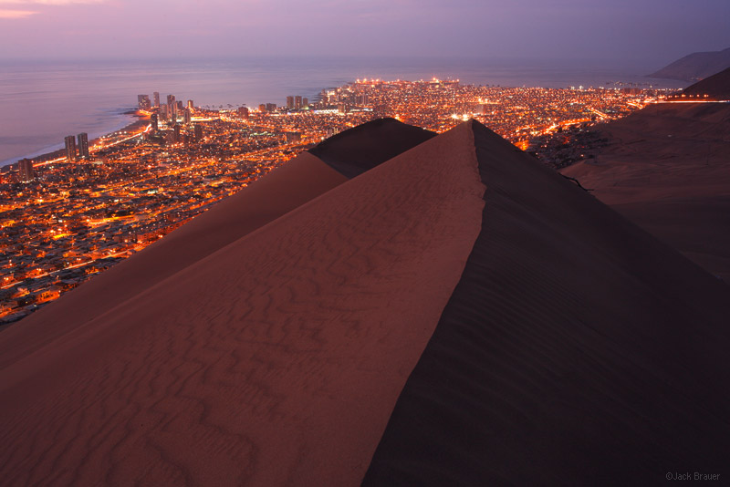 The lights of Iquique shine brilliant as seen from the top of Cerro Dragon, a huge dune that looms over the city. (vía Iquique | Mountain Photographer)