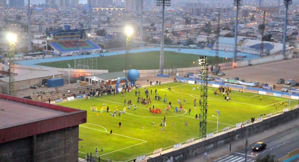 La nueva cancha Raúl Duarte de Iquique con el pasto verdecito.