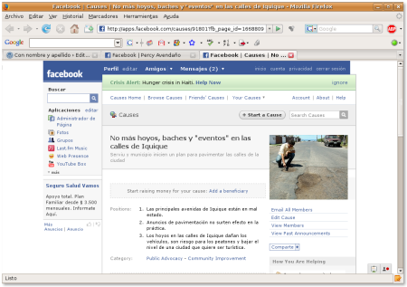 - Las tan populares y versátiles aplicaciones que funcionan dentro de Facebook. Dentro de estas aplicaciones están las «Causas» o campañas con un objetivo en común. Es una aplicación más, pero tiene tanta popularidad que se ha convertido en parte de la estructura misma de Facebook. Por lo tanto…