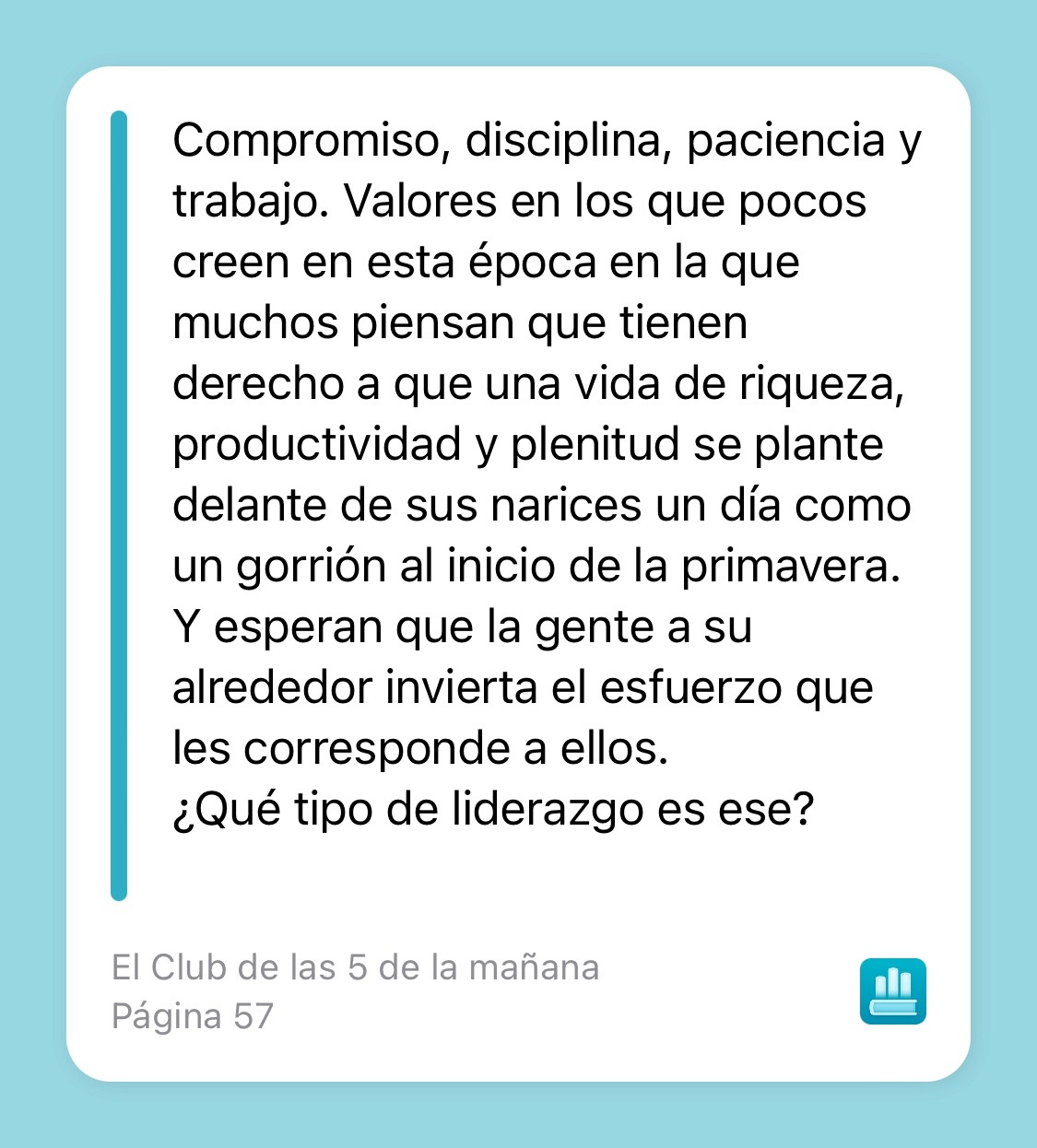 «El Club de las 5 de la Mañana» es una obra que destaca por su enfoque en el desarrollo personal y el crecimiento. Sugiere que debemos enfrentar nuestros miedos y desafíos para crecer y alcanzar nuestro máximo potencial. Este crecimiento no solo es personal, sino que también se extiende a nuestra capacidad para liderar y asumir responsabilidades. Critica la actitud de esperar que otros hagan el trabajo duro y promueve la idea de tomar la iniciativa.
