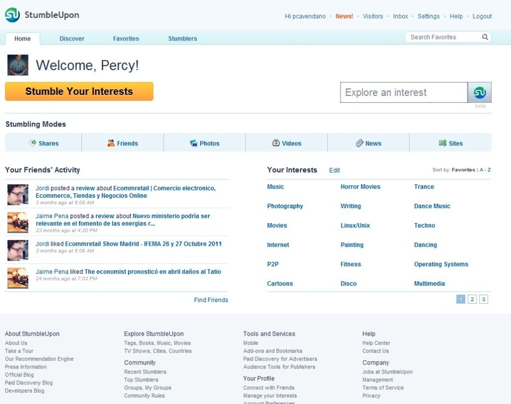 Stumbleupon se basa en las recomendaciones de páginas de miles de usuarios. Uno presiona un botón y comienza un recorrido por cientos de recomendaciones alineadas por temas, servicios o contenidos. También funciona de manera visual y permite conocer nuevos sitios, imágenes o videos que llamaron la atención a un grupo determinado de usuarios. Esta es una buena manera de descubrir nuevos servicios.